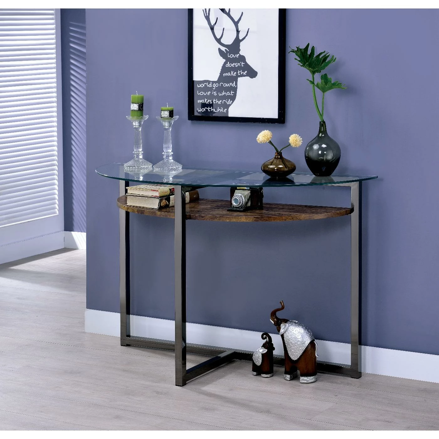 - T-shaped metal base creates a light and airy look