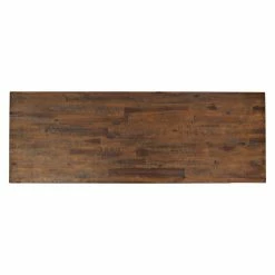 The Jofran Painted Canyon Sofa Table is lightly whitewashed and distressed for a breezy, lived-in feel. Contain essentials in a trio of drawers, and display treasures on two open shelves. Thick, angled legs have beveled feet.
