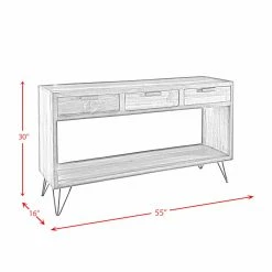 The Picket House Furnishings Tyler Rectangular Sofa Table will be the focal point of your living room. This piece is beautifully constructed with solid Brazilian pine with distinctive characteristics. This sofa table is a unique piece of furniture and no two pieces are the exact same. There are color and grain variation within each piece of wood. The cracks and dents featured are not blemishes but rather beauty marks which enhance the appearance. Dark metal drawer pulls and legs accent this piece for a rustic-industrial style design. Additional storage will not be a problem, as this table has three storage drawers and spacious shelf perfect for remotes and magazines. If you are looking to complete this look, this collection also has a complementing coffee table and end table.