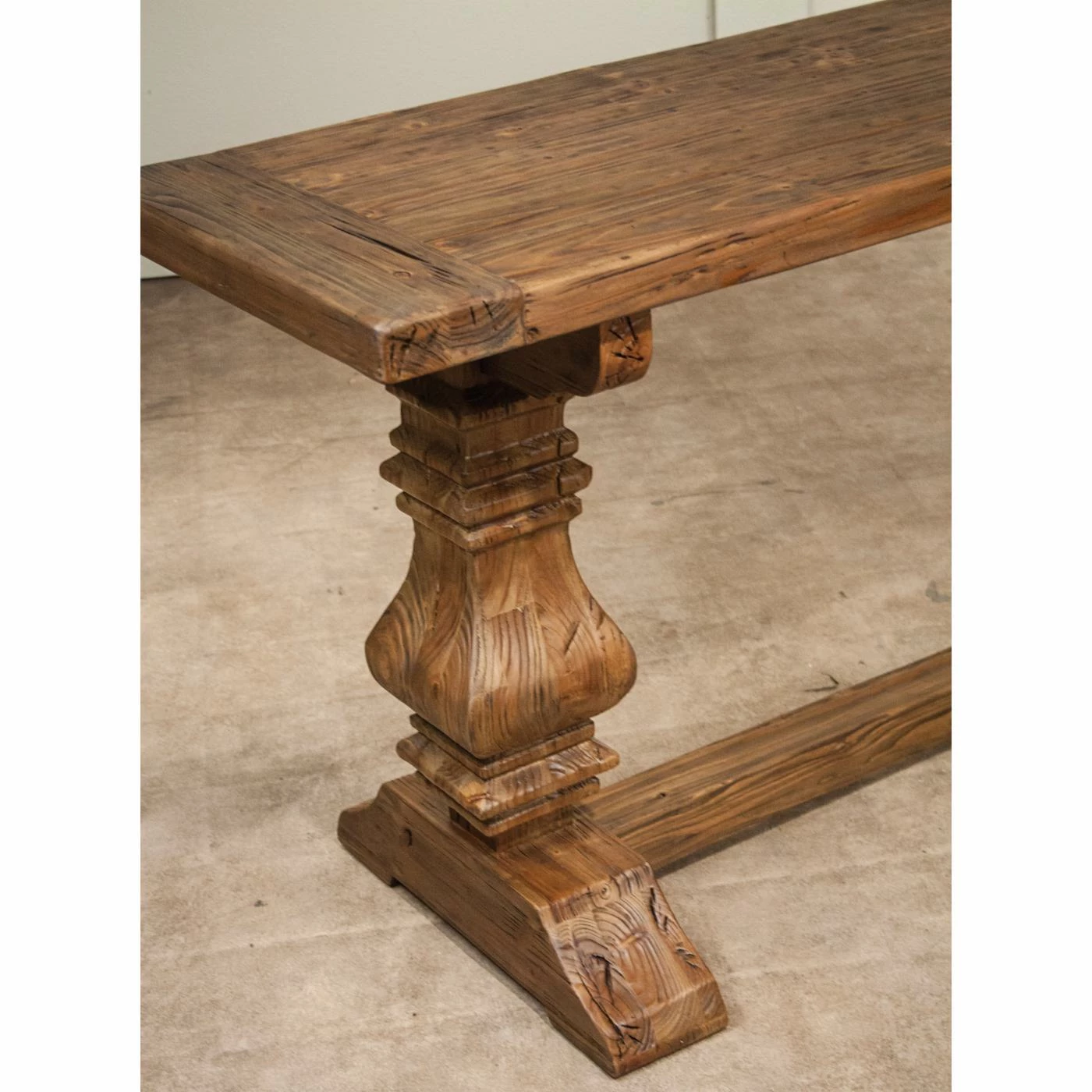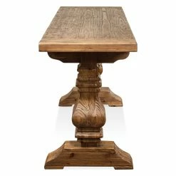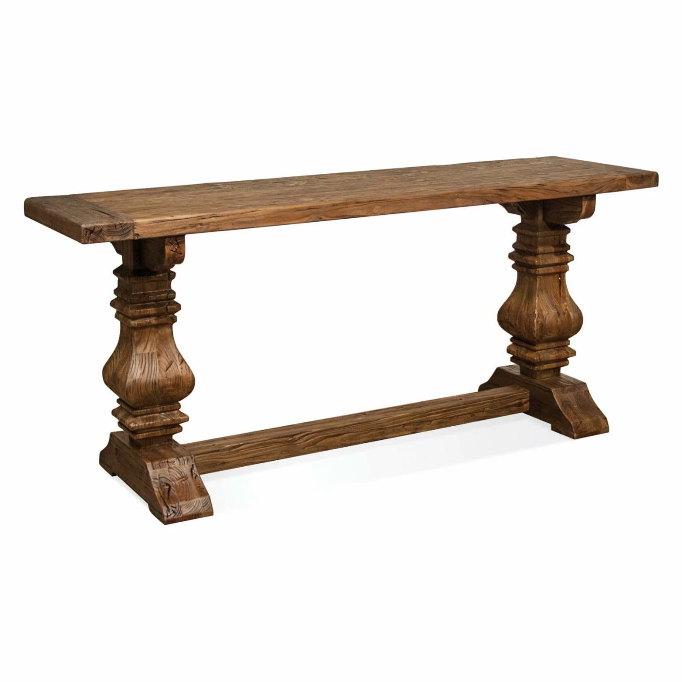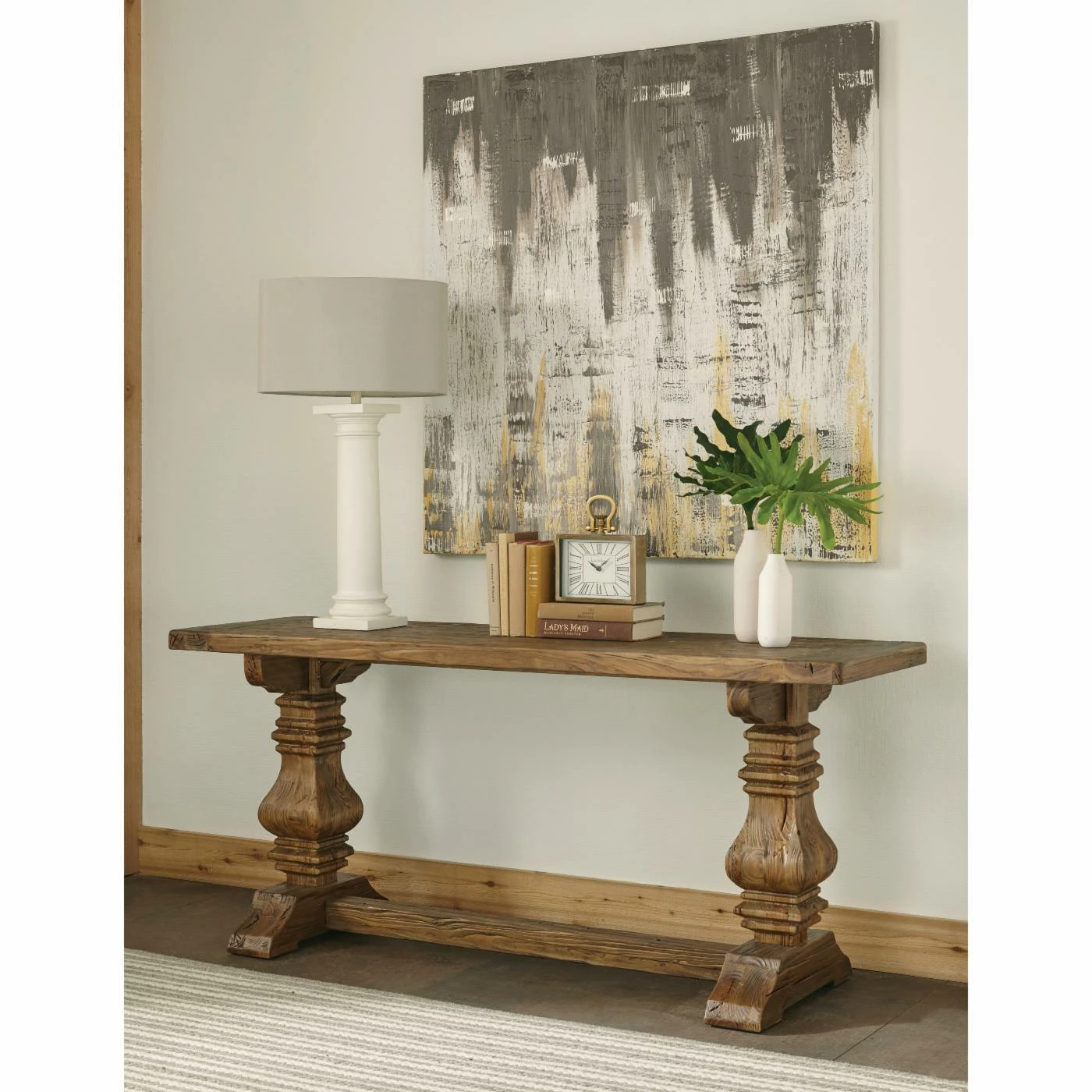 Accent your living room with a stunning display space with the Riverside Furniture Hawthorne Console Table. This console table has a wide rectangular top that’s ideal for lamps, vases, artwork, and more. A trestle base supports the design, featuring carved legs and a block stretched. Thick cypress hardwoods are used to construct the piece, finished in barnwood brown.