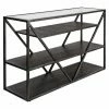 Your entry is the perfect place to showcase the Acme Furniture Justino Console Table. This half-round table features an oak top and a gray base. The lower shelf offers plenty of display space.