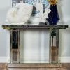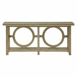 After you’ve seen the Coast to Coast Console Table – Silver, other consoles just pale in comparison. This hand-crafted table is made from solid birch with select elements of engineered hardwood. The hand-patted finish of metallic starshine gives it that signature color while it highlights the contemporary form. Each edge has a subtle frame that adds definition to the shape. The fixed lower shelf shows off a circular pattern at the back that makes this more than just another narrow table.