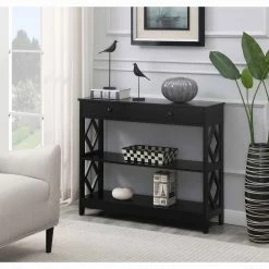 Create a welcoming entryway with the Convenience Concepts Diamond 1 Drawer Console Table. Constructed of engineered wood, this console table is durable and stylish. Diamond cutouts on the sides add visual interest to the piece. Two open bottom shelves allow you to store and display your favorite books or decorative items. A drawer provides closed storage for other knickknacks that might clutter up your living room. Choose from available finishes to find the Convenience Concepts Diamond 1 Drawer Console Table that works best for your home.