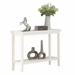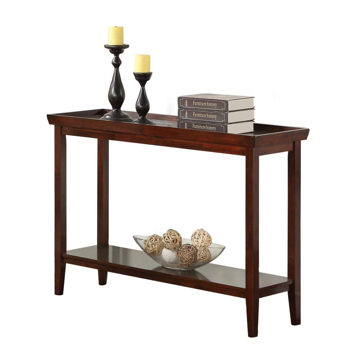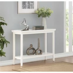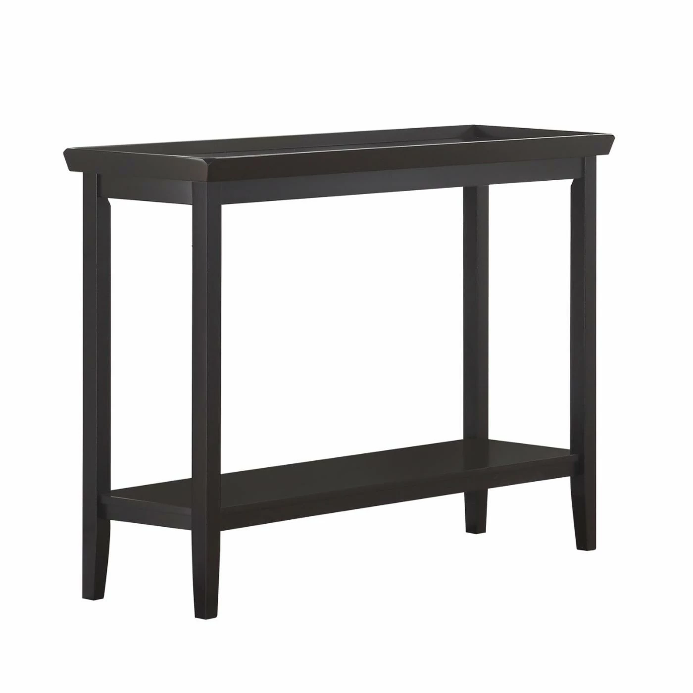 Clean lines, a tray style top, and tapered legs make the Convenience Concepts Ledgewood Console Table perfectly transitional. Pair this solid rubberwood console table with classic or contemporary designs. Its tray style top boasts raised edges to keep your items in check. A bottom shelf doubles the display space of this console table. Customize the look by choosing from available finish options. For a cohesive transitional design, look for other items from the Ledgewood Collection.