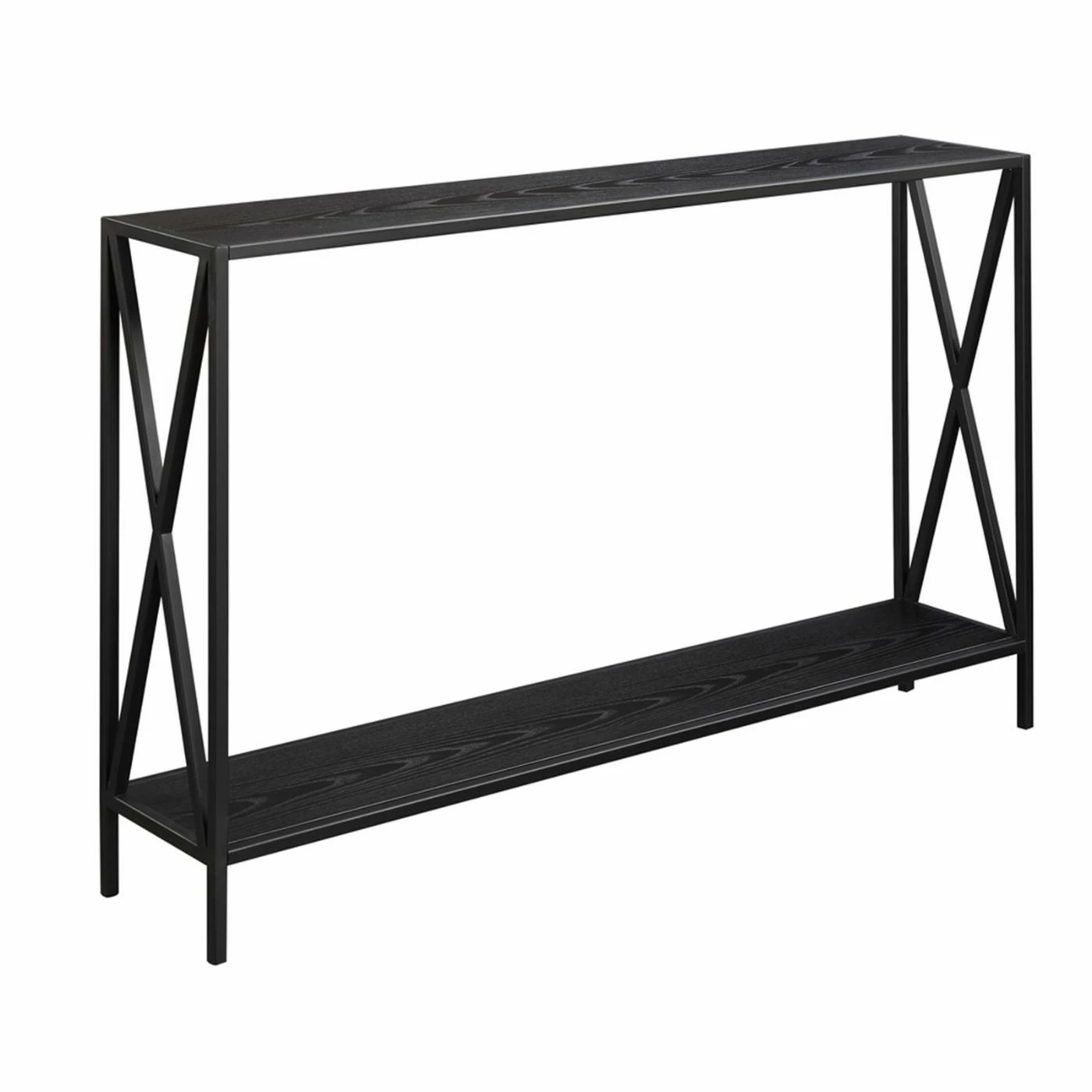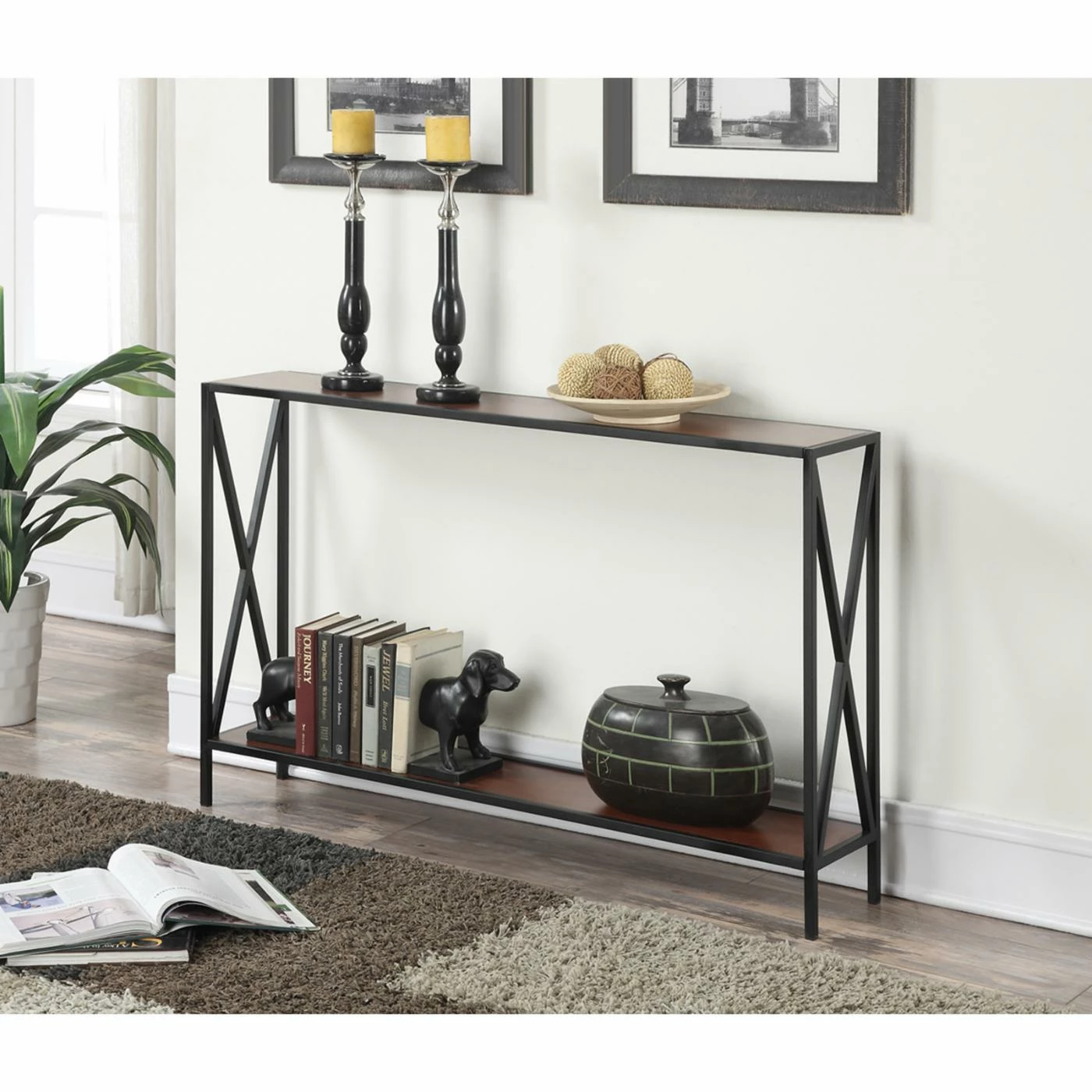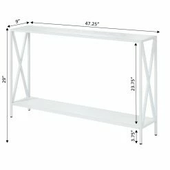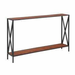 The Convenience Concepts Tucson Console Table boasts a sleek, modern style with a slim and slender form enhanced with criss-cross designs on each side. This contemporary console table comes in a range of bold finishes to suit your taste. The top and bottom shelf give you plenty of space to show off your book collection, decorative items, and much more.