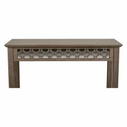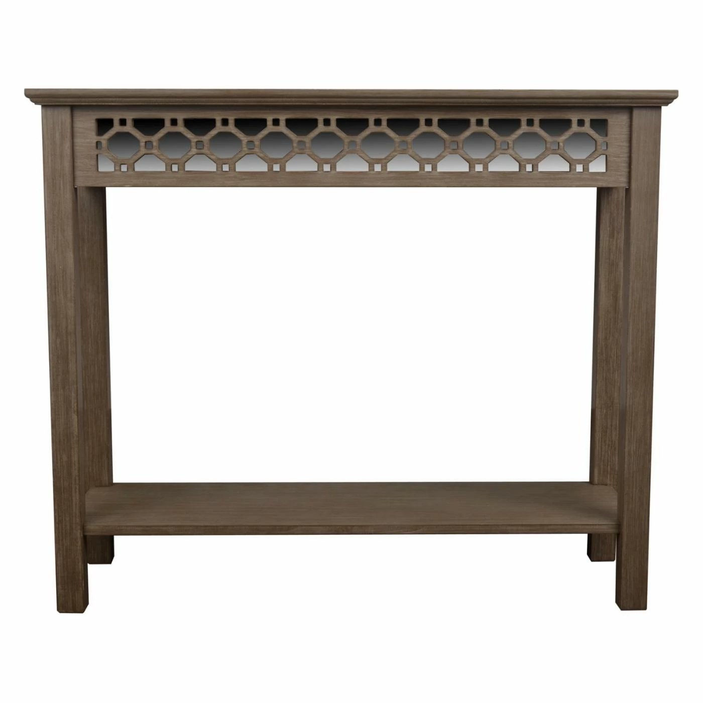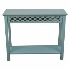Fill that empty stretch of wall with the Decor Therapy Mirrored Console Table for a captivating display space. This wide console table makes a sensational place to collect decorative art, souvenirs, family photos, and more, boasting a wide top and spacious lower shelf. The frame is built from tough medium-density fiberboard and is finished in your choice of available color options. The table’s apron is inset with a mirror panel, featuring a lattice-style overlay pattern.