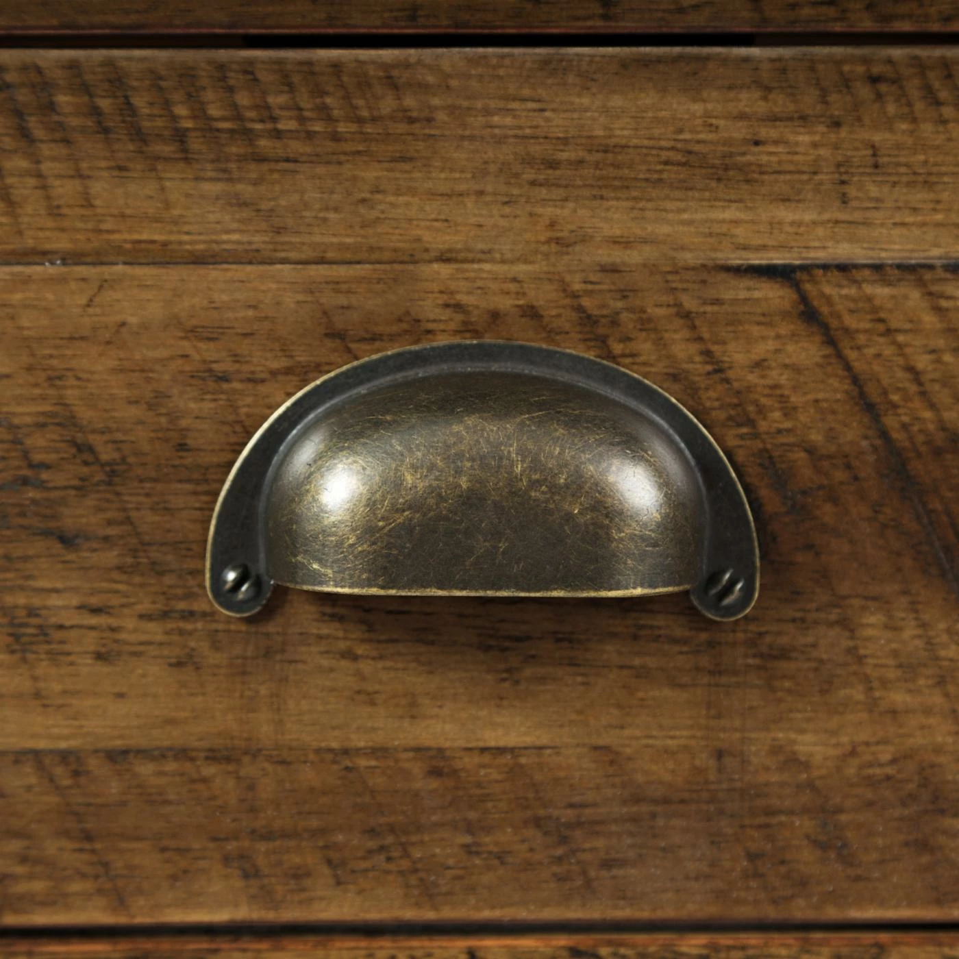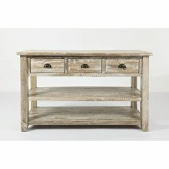 With its farmhouse style and simple elegance, the Jofran Artisans Craft Sofa Table updates your living room. Perfect for adding storage space to your home, this sofa table features three drawers for all those items that never seem to have a home, as well as two shelves for decorative items. Its solid hardwood construction and choice of available finishes allows this table to blend seamlessly with your existing furnishings.