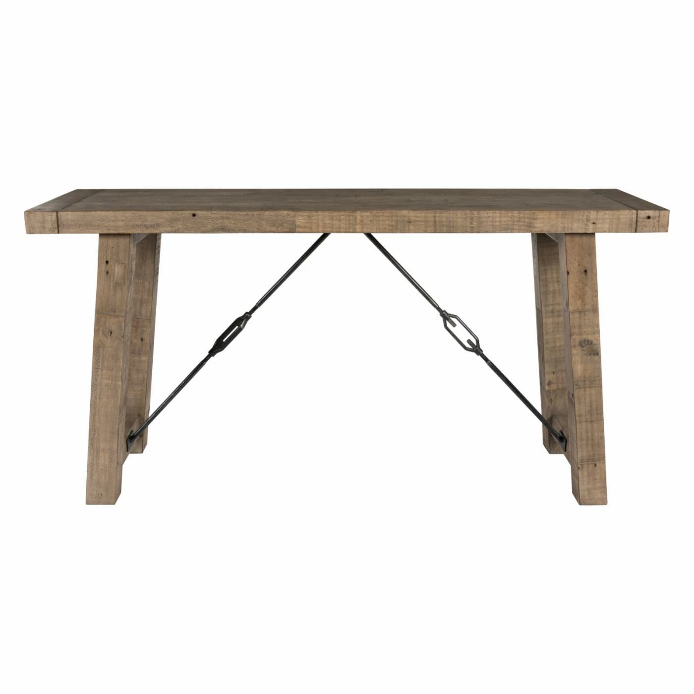 Add a little bit of extra flair to your living space with the Kosas Home Tuscany Reclaimed Pine Console Table. This slender table is perfect for displaying plants, photographs, and your favorite knick knacks in spaces without a lot of wiggle room. Made from solid, reclaimed pine wood, this table can stand the test of time. A diagonal metal turnbuckle support detail seems to hold the table together and brings a little bit of industrial edge to this modern farmhouse piece. Some assembly required.