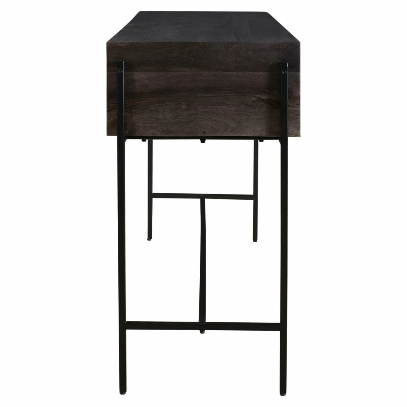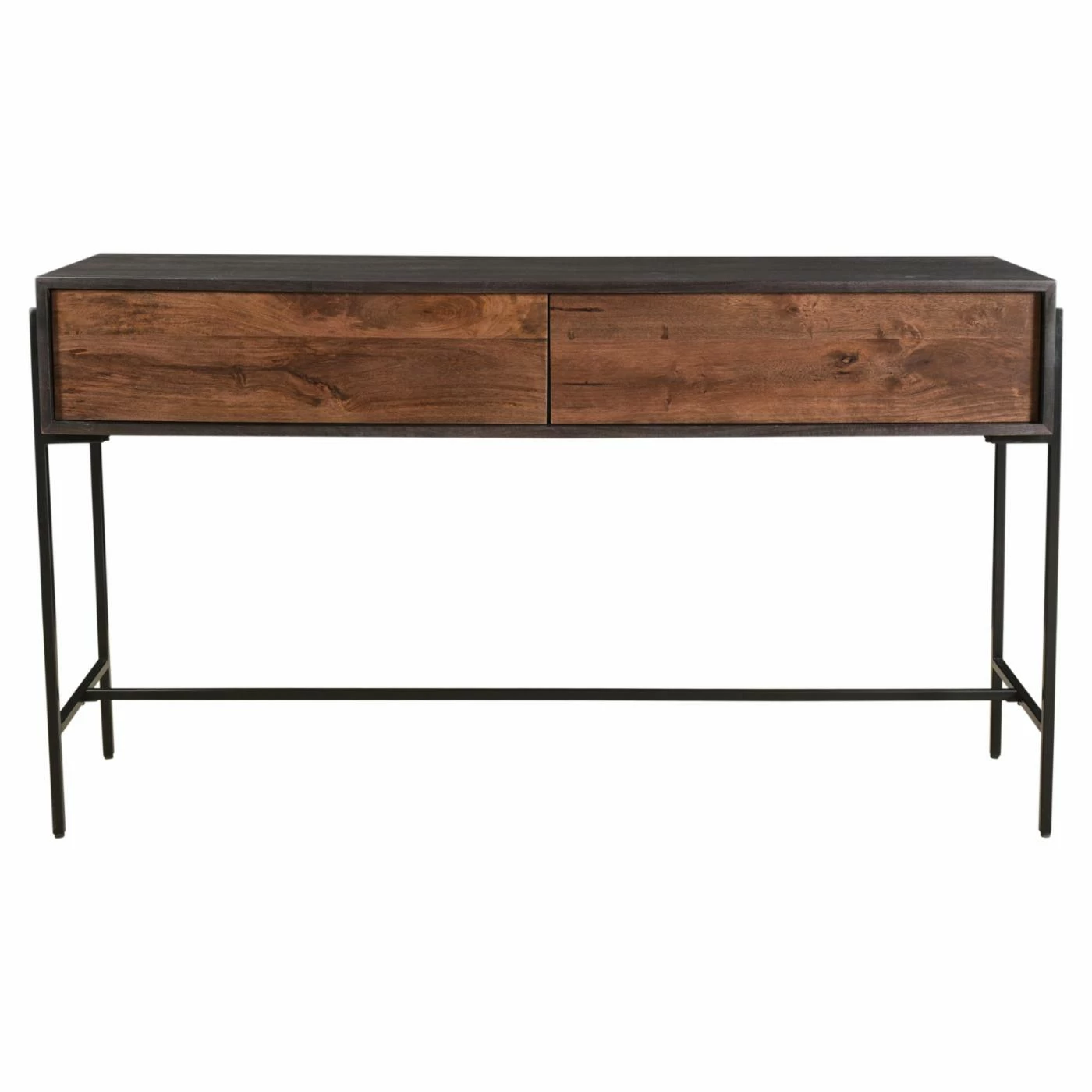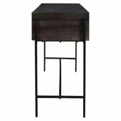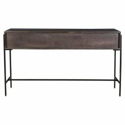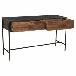 From cottage to town, the Moes Home Collection Tobin Console Table will deliver its versatile style to your home. This chic console table features a durable iron frame. Its body features solid mango wood and engineered wood construction. The smooth top expanse offers a sturdy base to hold a vase full of blooms or a collage of photo frames. The interior features two spacious drawers for stowing household essentials while keeping them close at hand.