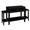 Top the Monarch Specialties Rectangular 2 Drawer Console Table with a few potted plants, a modern table lamp, and hang a sleek mirror above it. This engineered wood console table comes in your choice of available finish and features a sleek, minimalist design. The metal frame and base also comes in your choice of available finish to either match or contrast with the wood. Two drawers offer concealed storage for a variety of smaller items.