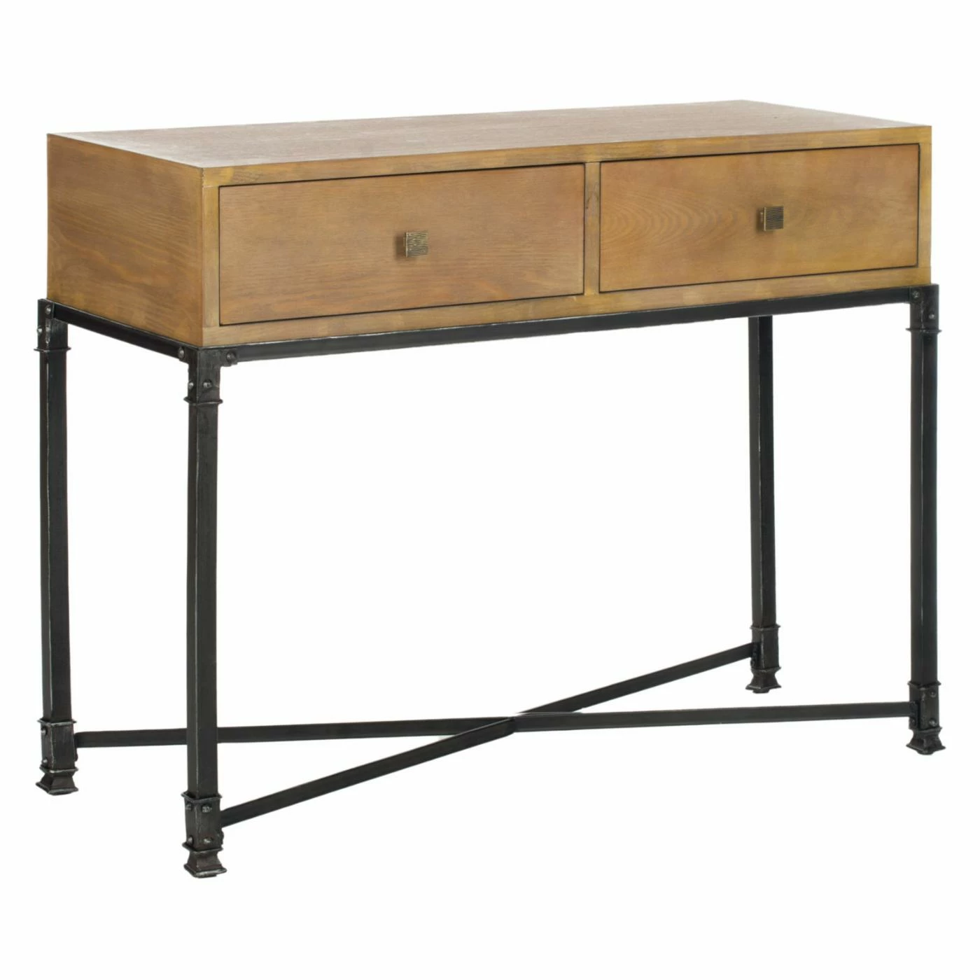 Simple touches can make a big impact, look at the Safavieh Julian Console Table – Natural for example. The sleek look of the natural-finish solid ash top contrasts beautifully against a streamlined metal base. Two drawers provide the perfect amount of storage to hide items out of sight. An X-stretcher base completes the look all the way to the floor.