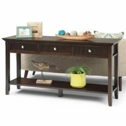 With three shelves and 12.5 inches between them, the Bamboo54 Bamboo Fancy Shelf Console Table Shelf is a wonderful way to display your favorite pictures or vases. The table is light-weight but sturdy. The table is available in a natural color to complement many different looks. The table is crafted from eco-friendly, natural bamboo. Basic assembly is required before use.